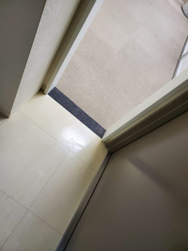 床に5ミリ程の段差がありますのであえてタイルカーペットの色は、つまづき防止のために変えて見ました。