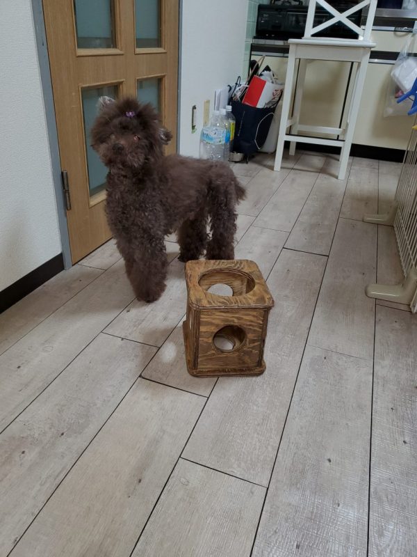 老犬でごはんを食べるのに食べやすい高さでなんでもいいから出来ないか?とのご依頼からの現場の廃材で製作しました。よかったよかった❗