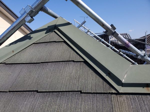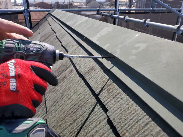 最高ですね♪次は屋根です↓屋根板金を留めてるステン釘が浮いてる箇所が多数あり、一度こうなると沈めても同じなのでステンビスで全ヵ所入替しました。これで台風がきても安心!コーキングも劣化してますので、当然