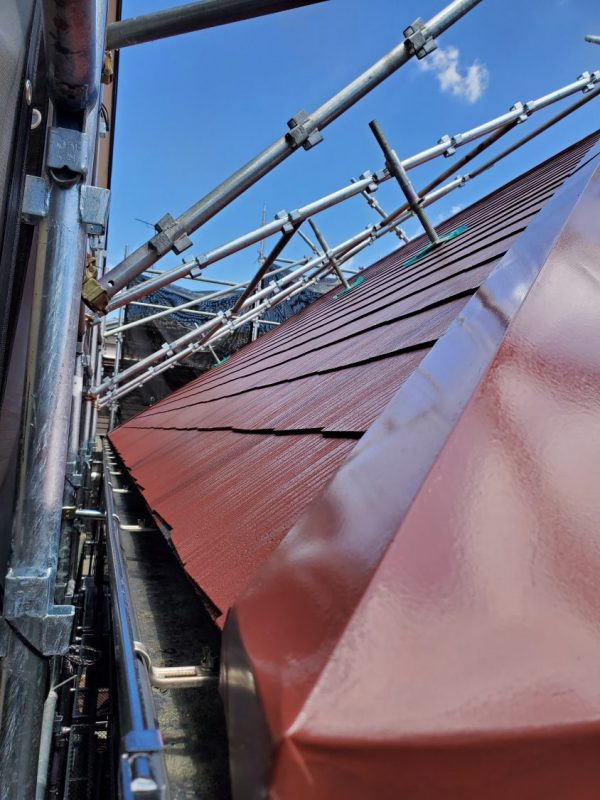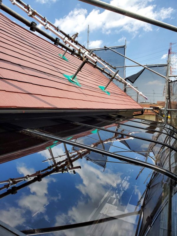 赤い屋根の家もいいですねぇ❕長年にわたっての劣化が随所にありましたが・・・新築の様にピッカピカ(^^♪ベランダ防水工事防水完了そしてアクリル屋根を新品に交換して、全ての改修工事完了致しました。