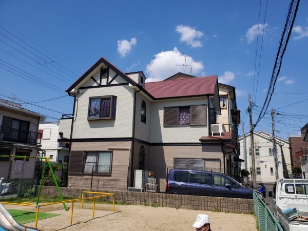 N様から家屋全塗装工事させて頂く事になりました。先ずは全景のビフォーアフターを !以前の外観も良かったのですが今回は明るい2色の配色を選ばれて、ナイスです!!